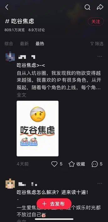 吃谷吃出焦虑的并非星野一人,小红书#吃谷焦虑#话题下有8.9万讨论量,动辄陷入复数谷负担的“星野们”陷入焦虑,让吃谷变成了一项不得不做的任务,而非最初那份对角色的爱。